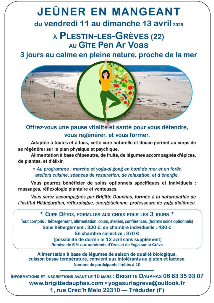 Le prochain stage « Jeûner en mangeant » est prévu du 11 au 13 avril,